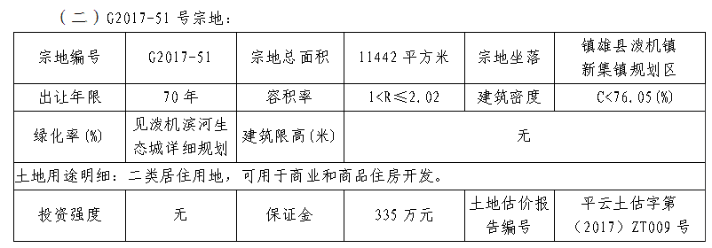 五、申請人可于 2017年8月30日至2017年9月5日 到昭通市昭陽區(qū)團結(jié)路東延線祥順嘉園昭通市公共資源交易中心向鎮(zhèn)雄縣國土資源局土地儲備交易中心提交書面申請。交納競買保證金的截止時間為2017年9月5日16時30分。經(jīng)審核,申請人按規(guī)定交納競買保證金,具備申請條件的,鎮(zhèn)雄縣國土資源局土地儲備交易中心將在 2017年9月5日17時30分前確認其競買資格。