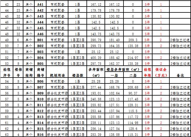 (二)拍租一層至二層合并為一個(gè)商鋪58 間,使用期5年,每間商鋪預(yù)交競(jìng)租保證金2萬(wàn)元, 詳見(jiàn)商鋪簡(jiǎn)介(欲競(jìng)租多間商鋪,保證金類(lèi)推)。