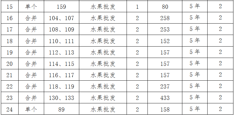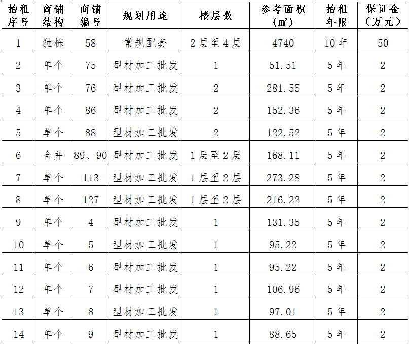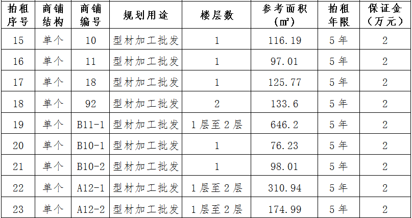 (三)拍租位于鎮(zhèn)雄縣舊府街道魯家院子安置點(diǎn)24間商鋪使用權(quán)。以間為單位拍租。詳見(jiàn)下表: