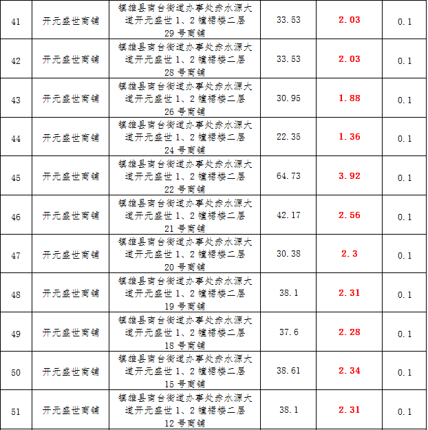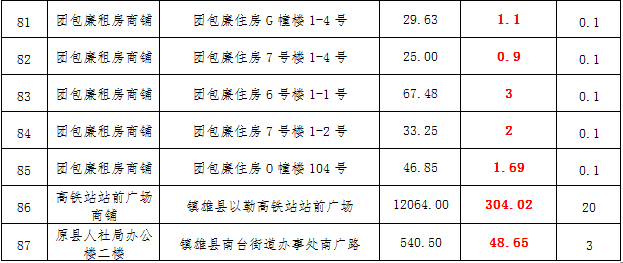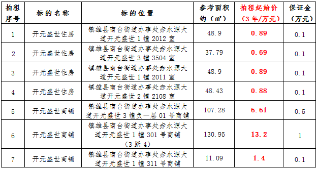 (一)拍租鎮(zhèn)雄發(fā)展集團有限公司國有門面3年期使用權(quán),詳見下表: